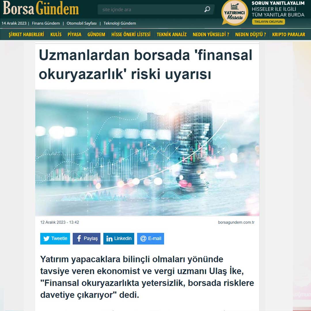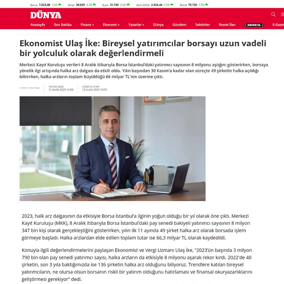 Mesleğini tutkuyla yapan ve kendi sektörüne yorumlarıyla yön veren Ulaş İke, aynı zamanda Türkiye’nin önde gelen ulusal gazetelerinin dijital platformlarının yanı sıra çeşitli ekonomi ve finans platformlarda, düzenli olarak köşe yazıları yayımlanmaktadır.